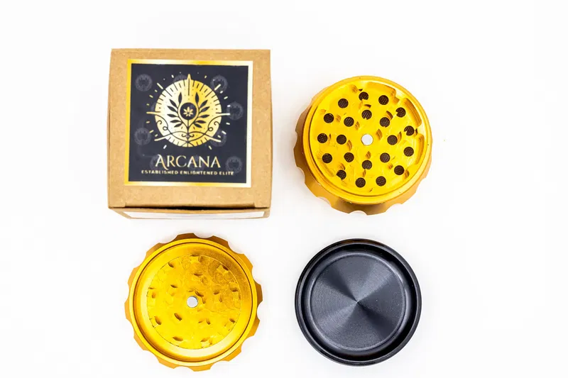 The ARCANA 4-layer aluminum grinder has a modern, sophisticated vibe that appeals to both seasoned connoisseurs and casual users alike. Its polished aluminum finish gives it a sleek look, while its ergonomic design makes it easy to use. This grinder is perfect for those who appreciate functionality without compromising on style.